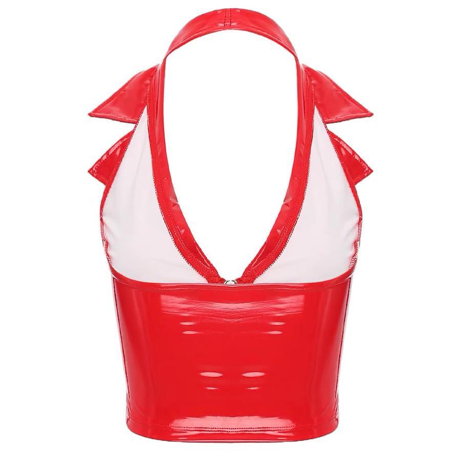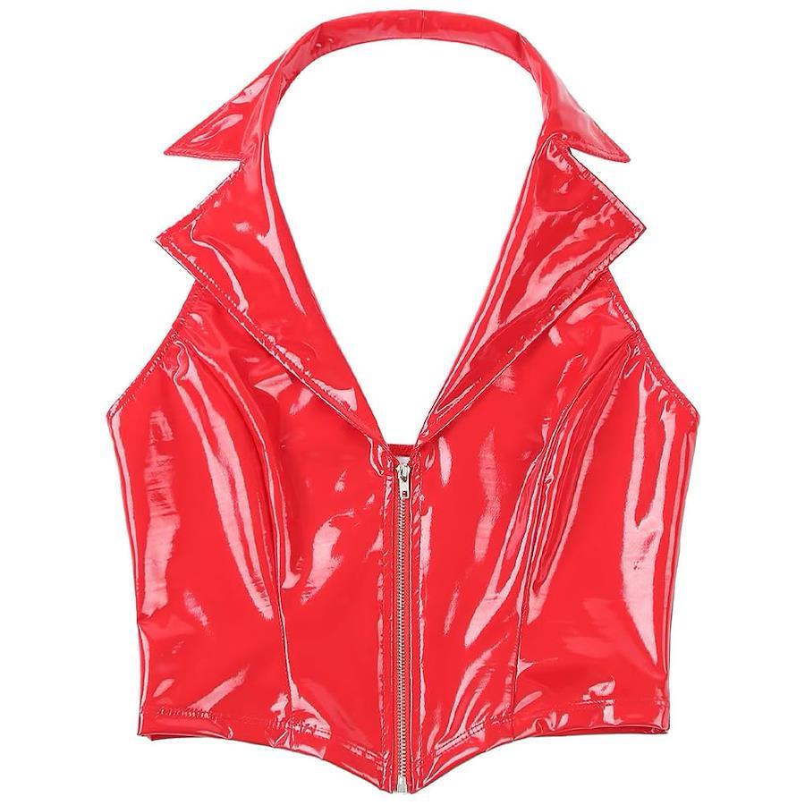 取り扱い案内 手洗いのみ。【海外サイズ:L】【ストレッチ性エナメル】【特大サイズあり】ベストのセクシートップス。ホルターネック&ノースリーブ。タキシード風レディース・コスチューム…※仕様詳細は下部を参照のこと。(#lf)(#lf)(#lf)商品購入前に、ストア紹介ページをご確認ください。