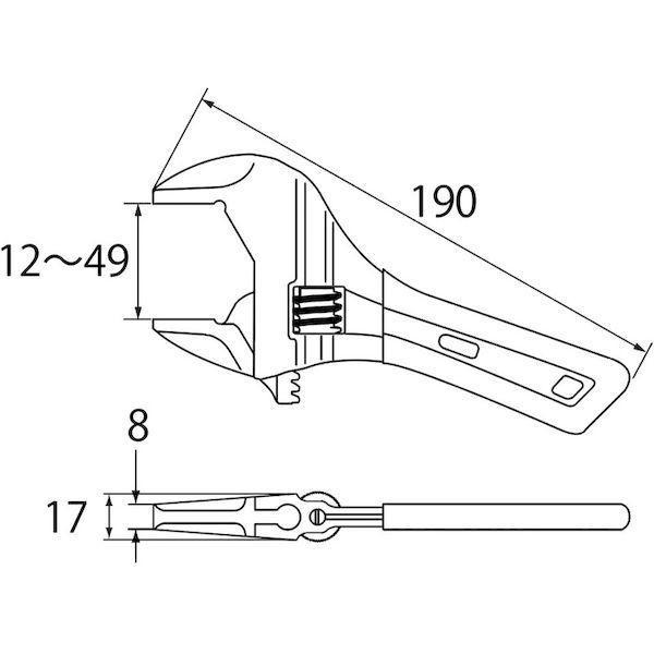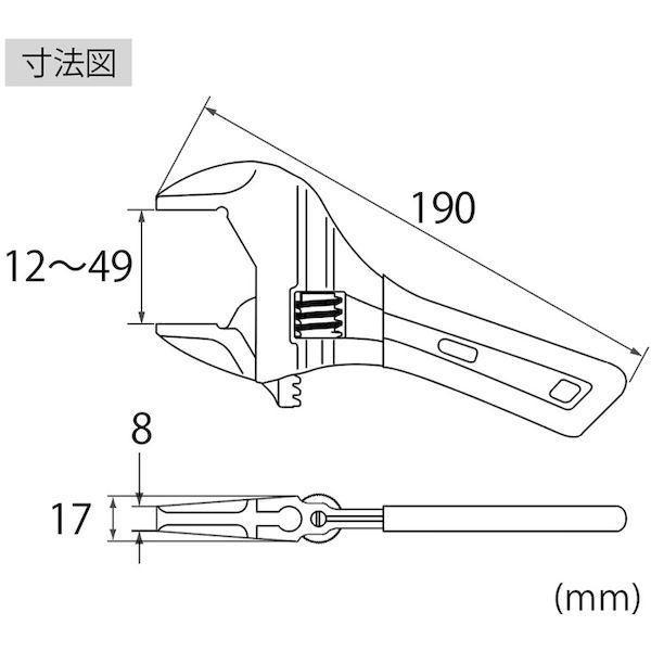 ●先端厚さ(mm):8ボルト・ナット最大寸法:M30、二面幅49mm以下の各種継手、ユニオン、袋ナット