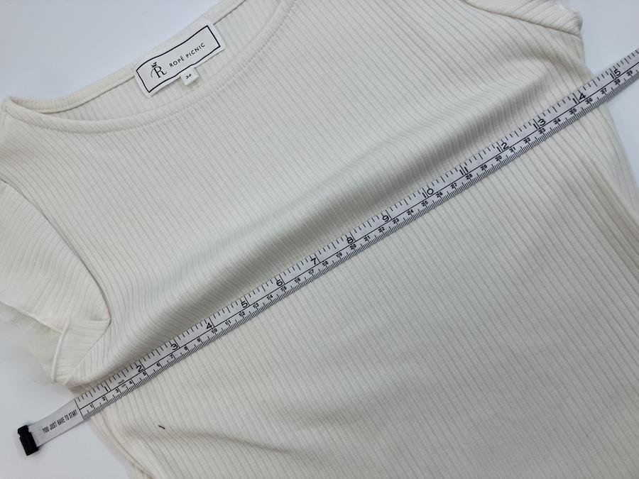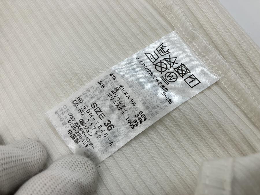 実寸サイズ(平置き):【トップス】・サイズ:36(表記)・着丈:約53cm・バスト:約37cm~最大45cm(伸縮性あり)