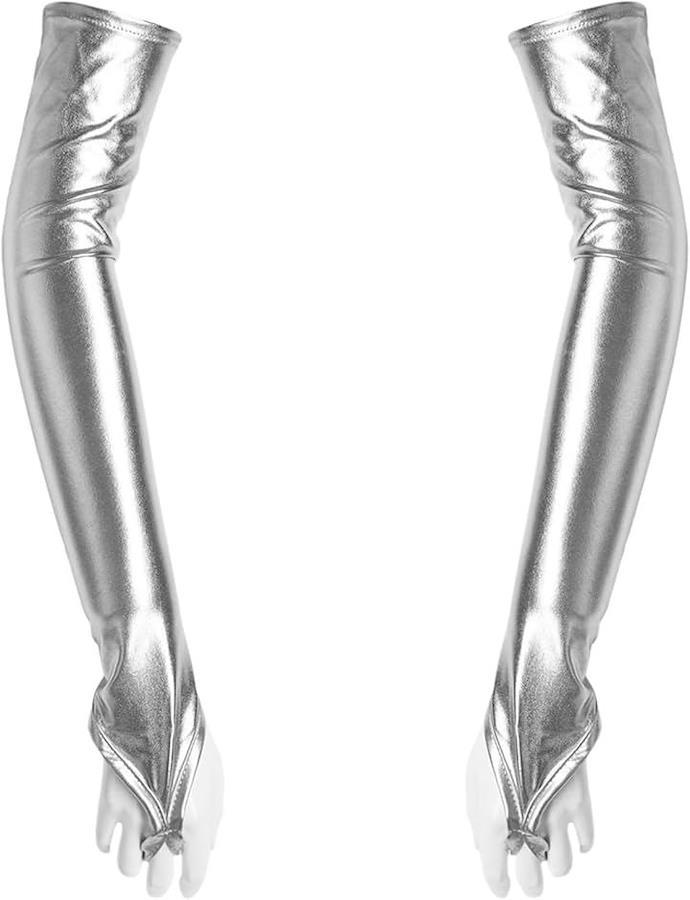 ロンググローブ 腕カバー 指なし 光沢 メタリック レディース レザー調 伸縮 コスプレ 衣装 仮装 コスチューム