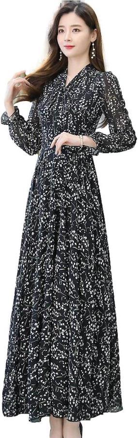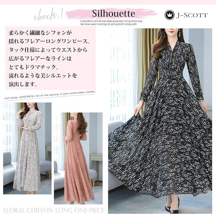 柔らかく繊細なシフォンが揺れるフレアーロングワンピース。