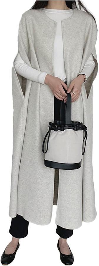 ロングジレ レディース 秋冬 ポンチョ ロングベスト 上着 アウター 羽織りもの オフィス カジュアル
