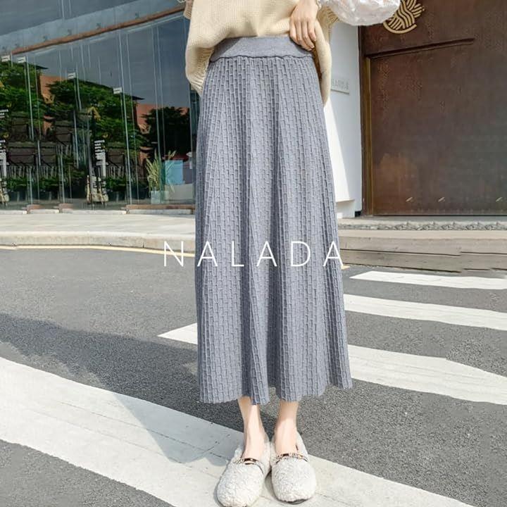 ウェストゴムがラクチン*Aラインのシルエットがスタイルアップして見えるニットスカート。