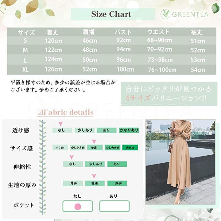 XLサイズ:着丈/126肩幅/52バスト/100ウエスト/76~100袖丈/54