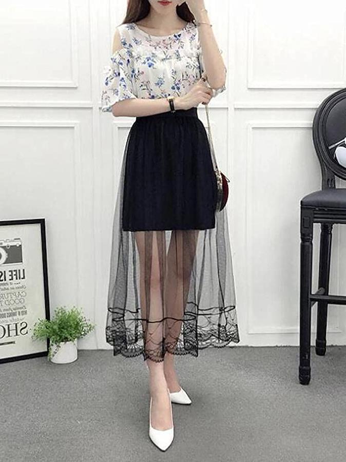 ・「サイズ」フリーサイズ (約)ウエスト58~92cm、ヒップ82cm、チュール丈87cm、裏地丈59cm *伸縮性がございます。