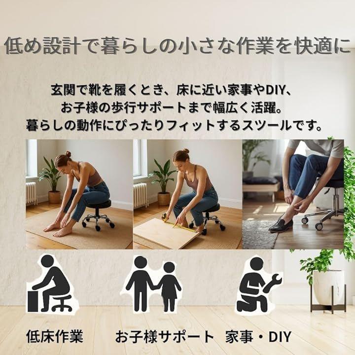 「多用途に使えるデザイン」車の整備、床掃除、ヨガ、マニキュア、オフィス作業など様々なシーンで使用可能。