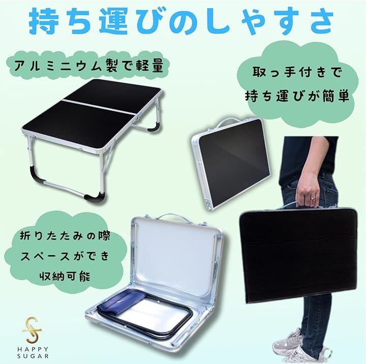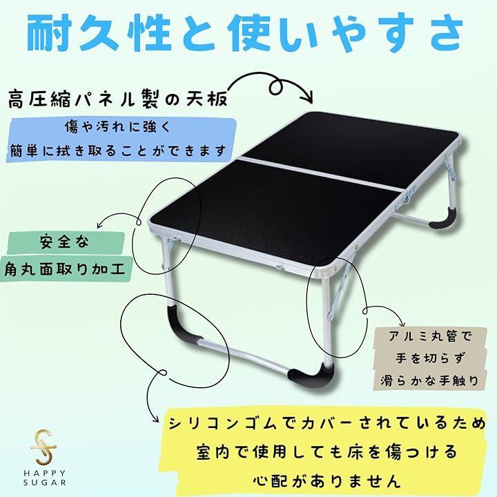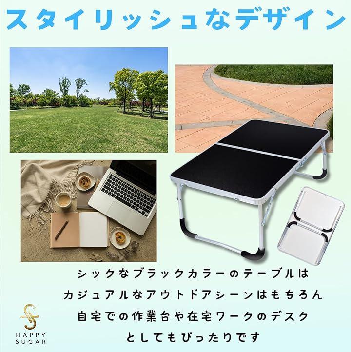 「スタイリッシュなデザイン」シックなブラックカラーのテーブルは、カジュアルなアウトドアシーンはもちろん、自宅での作業台や在宅ワークのデスクとしてもぴったりです。