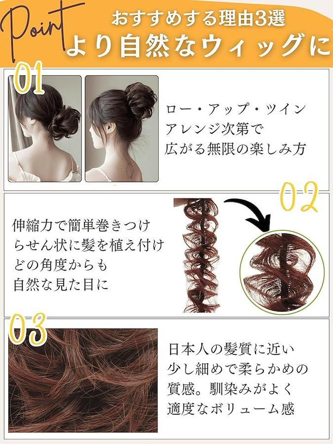 「日本人に近い髪質を再現」 (7)特徴:日本人に近い髪質の少し細く柔らかめの髪質の人毛様耐熱ファイバーです。