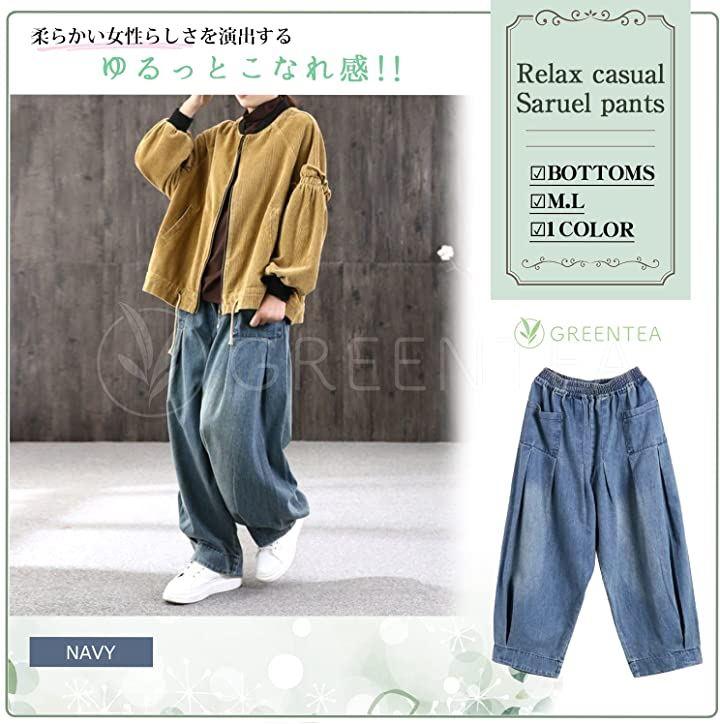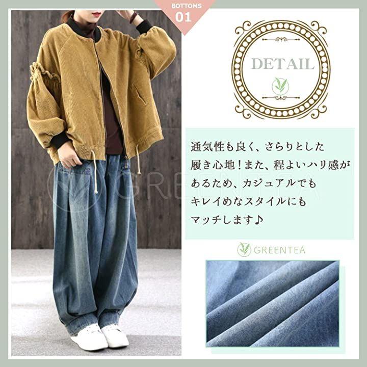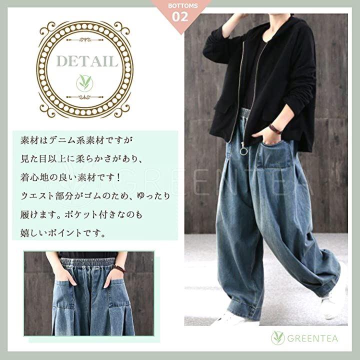 ・素材はデニム系素材ですが見た目以上に柔らかさがあり、着心地の良い素材です。ウエスト部分がゴムのため、ゆったり履けます。
