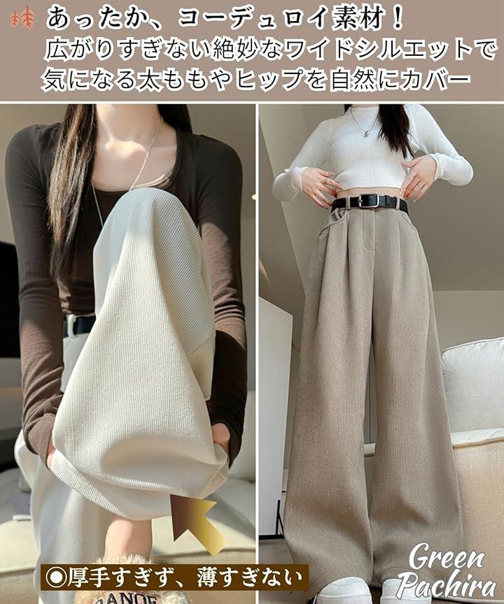 「はくだけで“美脚”が叶う、秋冬 ワイドパンツ」秋や冬に欠かせないこのレディース パンツは、 季節感あふれるコーデュロイ素材で仕立てた上品なボトムスです。