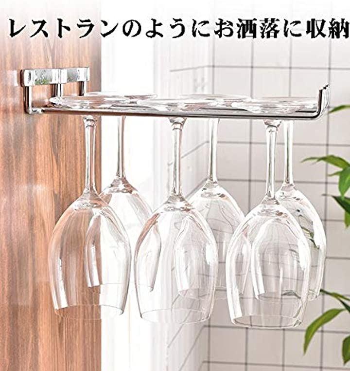 ・ワイングラスをオシャレに収納。ワイングラスだけでなく、カクテルグラスなどの脚の付いているグラスに対応可能です。