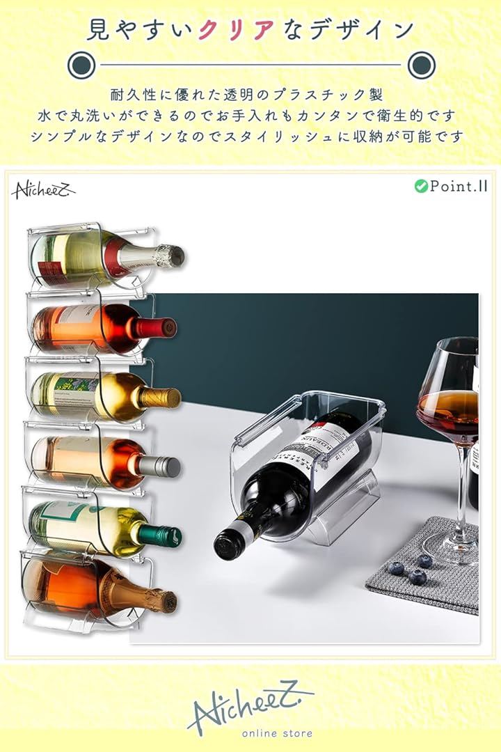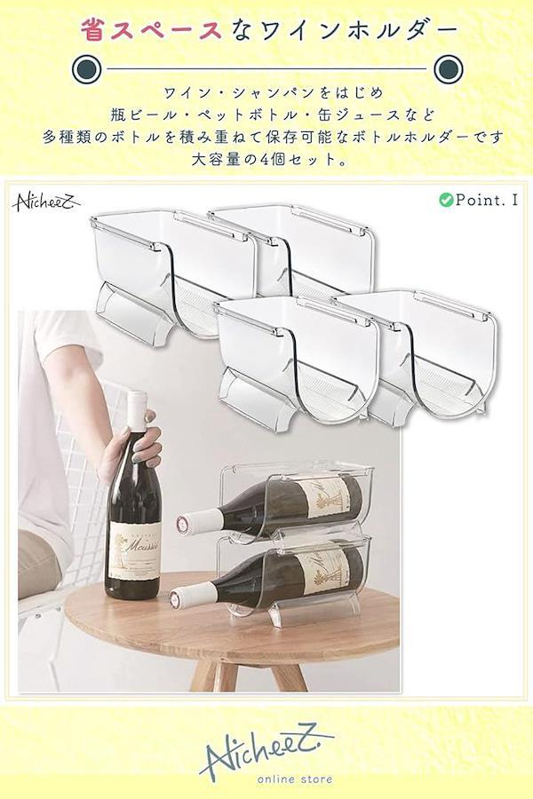 「省スペースなワインホルダー」ワイン・シャンパンをはじめ、瓶ビール・ペットボトル・缶ジュースなど、多種類のボトルを積み重ねて保存可能なボトルホルダーです。