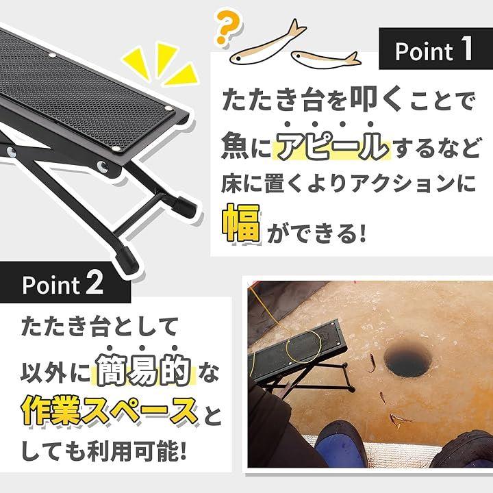 たたきアクションなどワカサギ釣りの必需品。コンパクト収納で持ち運びにも便利。電動リールたたき台(ブラックカラー)の販売です。