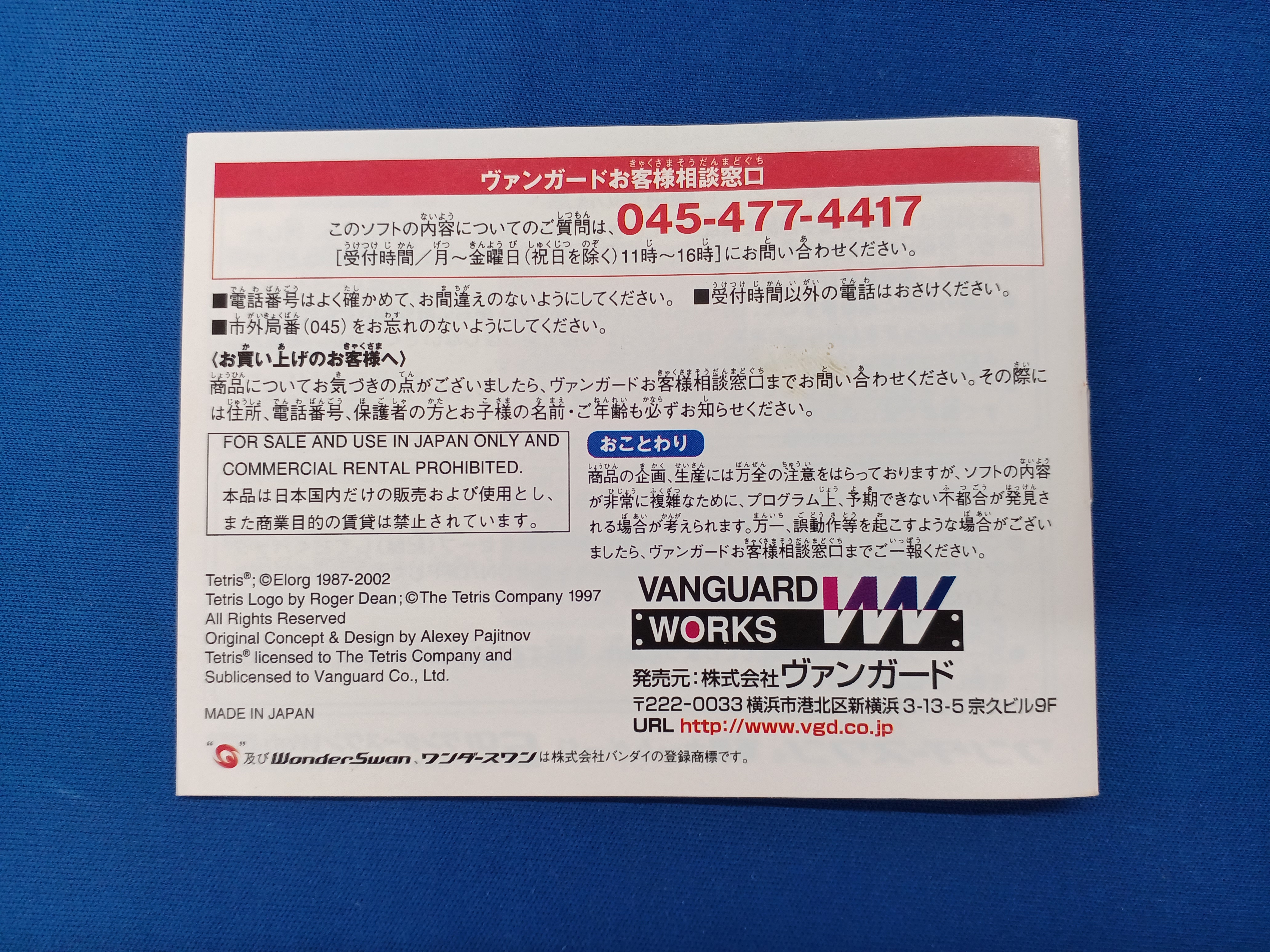 ワンダースワンソフト テトリス ヴァンガード ワンダースワンソフト ヴァンガードテトリスワンダースワンソフト
