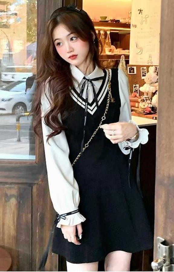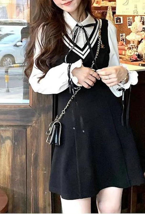 「制服っぽいVライン」 プレッピーな雰囲気たっぷりのスタイリングで上品ガーリーに。