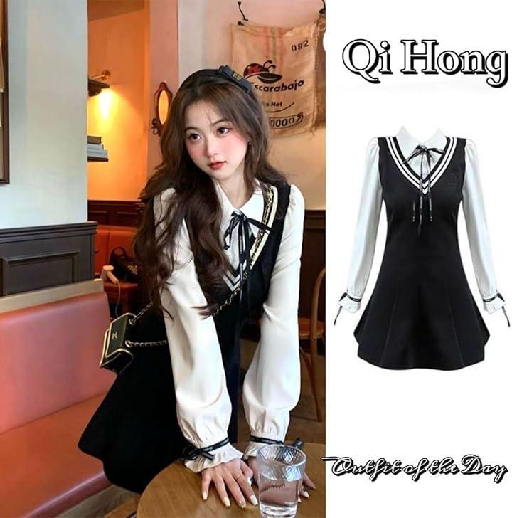 「大人っぽいモノトーン」 シンプルなデザインの黒のフレアミニのワンピース。