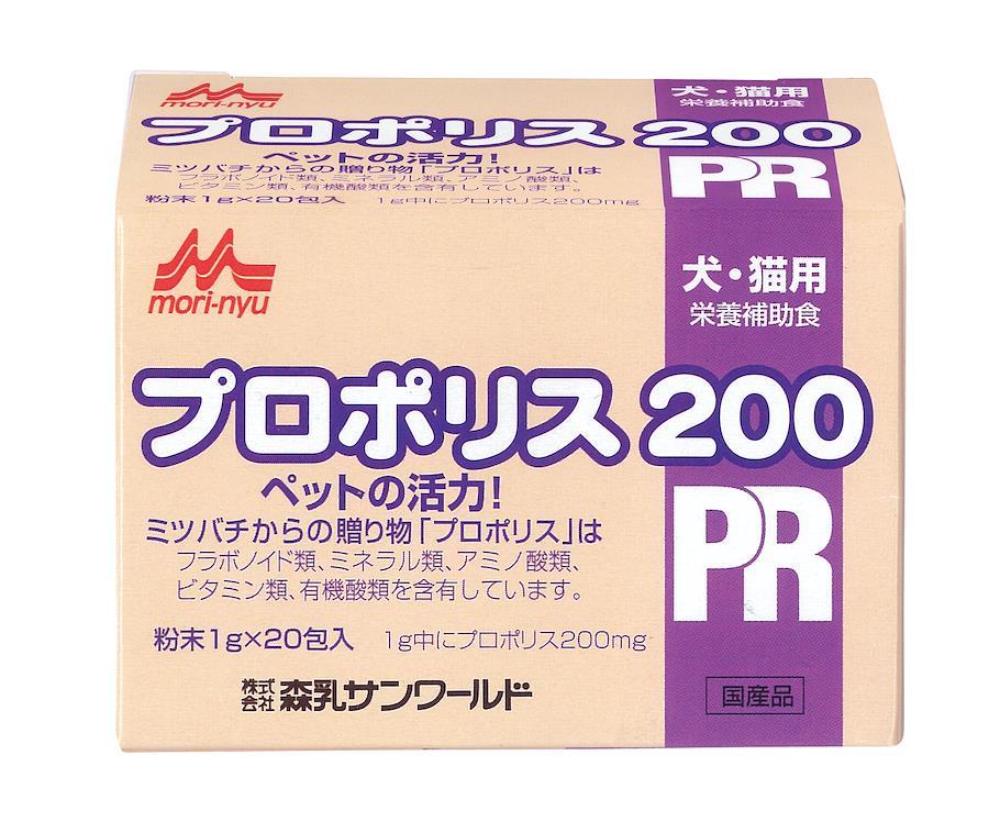 機能性素材を含有した健康食。いつまでも健康でいてほしいペットに、蜜蜂が作った天然物質プロポリス。
