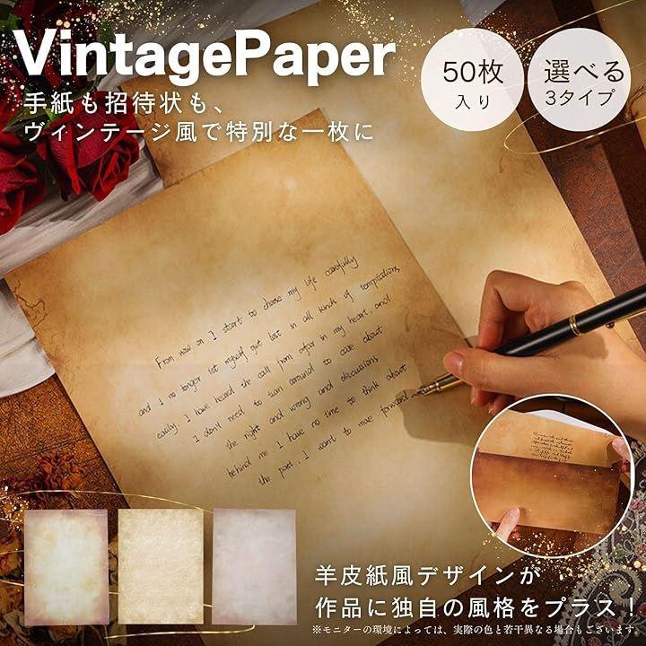 リアルな羊皮紙風デザインのヴィンテージペーパーで本格的な雰囲気を演出:両面印刷されたリアルな古紙風デザインが、手紙や招待状、楽譜、宝の地図などに独自のヴィンテージ感をプラス。