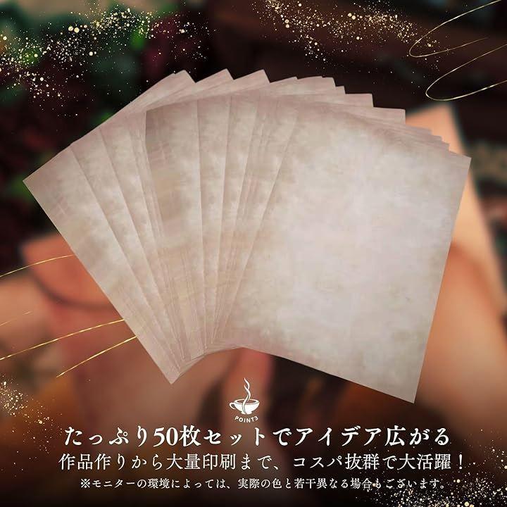 リアルな羊皮紙風デザインのヴィンテージペーパーで本格的な雰囲気を演出:両面印刷されたリアルな古紙風デザインが、手紙や招待状、楽譜、宝の地図などに独自のヴィンテージ感をプラス。