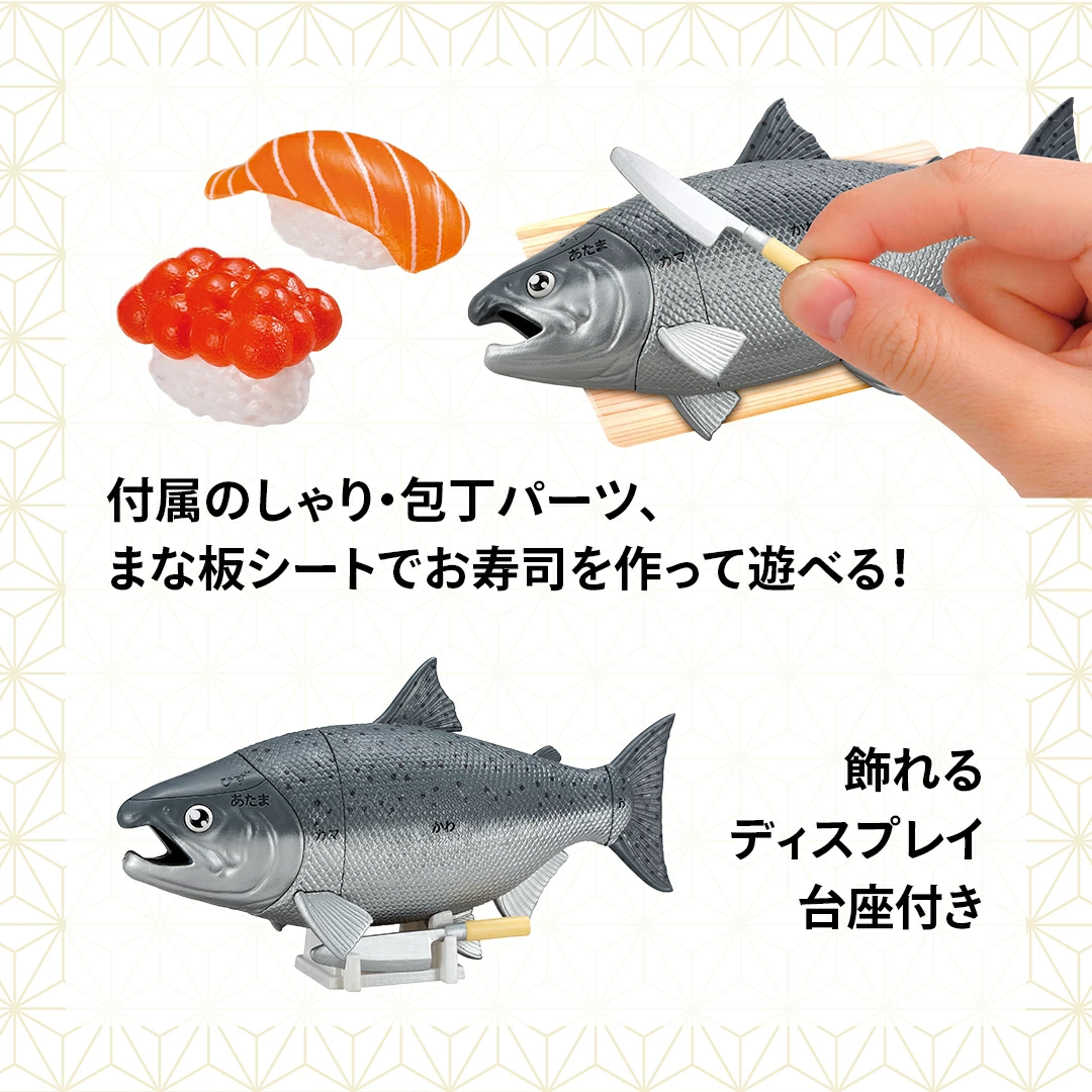 【セット内容】胴体、あたまA、あたまB、ひれA、ひれB、カマ、かわ、お通常部位パーツ:せみA、せみB、せみC、せみD、せみE、せみF、せみG、はらみA、はらみB、はらみC、はらみD、はらみE、はらみF、おみA、おみB希少部位パーツ:めだま、ひず、なかぼねA、なかぼねB、ハラスA、ハラスB、すじこA、すじこB、すじこC、ハツ、ワタ台座、包丁パーツ、シャリパーツ×2個、まな板シート(組立て方ガイド)