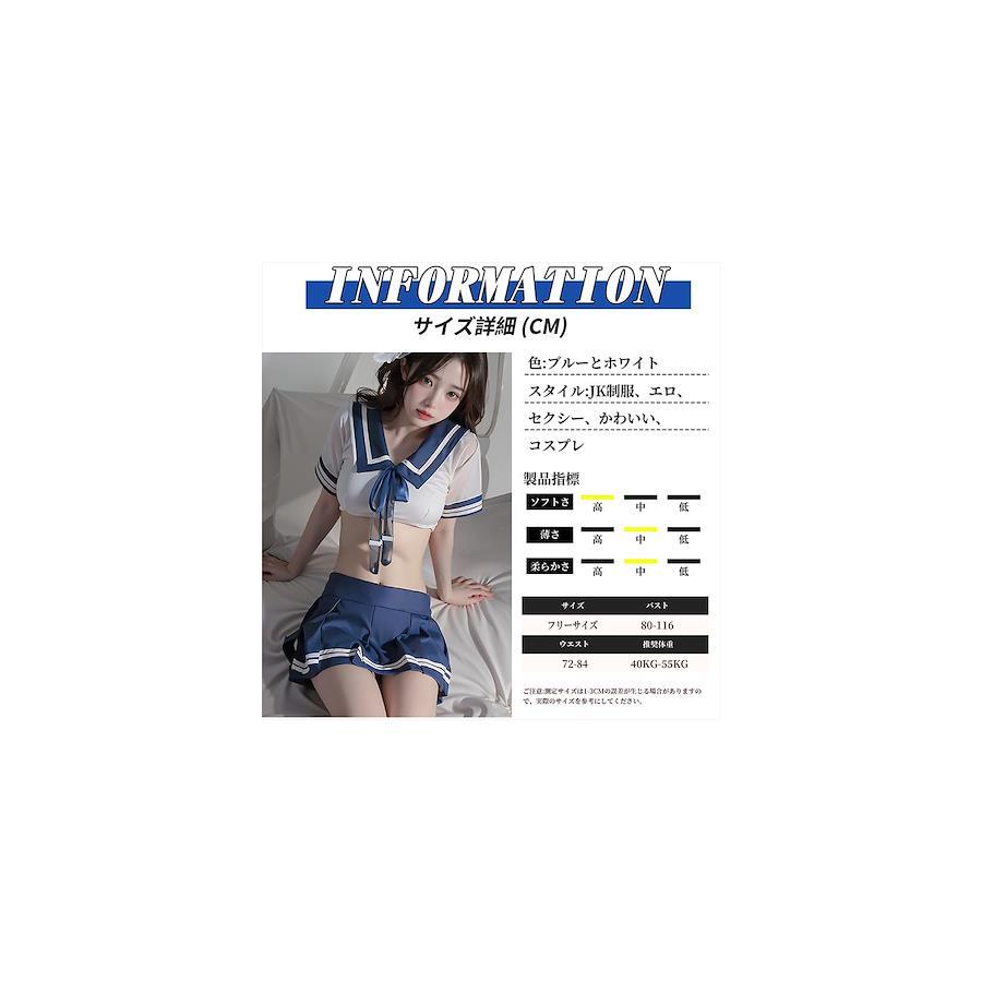 原産国 中国【セット内容】:上下セット、Tバック、ネクタイ、ソックス【サイズ】:フリーサイズ。バスト:80-116cm。ウエスト:72-84cm。推奨体重:40KG-55KG。【素材】:95%ポリエステル、5%スパンデックス。【製品の特徴】:①5点豪華なセット内容:上下セット、Tバック、ネクタイ、ソックス。JK制服の女子高生を生き生きとcosplayしています。②青と白の配色は青春の雰囲気に満ちています。着用者に青春の活力を与え、魅力を高めます。③超短めのトップスのデザインは胸の半分とウエストも露出しており、とてもエロです。④スカートはベルクロデザインで着脱が簡単です。⑤スカートのスリットデザインが脚の曲線を美しく見せ、お尻までのスリットでお尻が露出し、抜群のセクシーです。【おすすめの対象】:バレンタインデー、恋愛記念日、結婚旅行、結婚記念日、恋愛の倦怠期、クリスマスなど、欠かせないプレゼントです。セクシーランジェリーは、心の中に埋もれていた欲望を目覚めさせ、パートナー間の情熱に火をつけ、毎日を新婚初夜と同じくらい情熱的なものにすることができます。(#lf)(#lf)(#lf)商品購入前に、ストア紹介ページをご確認ください。