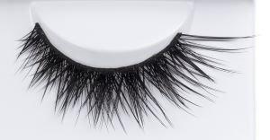 まつげの根元の部分を持ちながらゆっくりと台紙からはがし、毛の軸の部分全体にドンピシャンをつけます。(接着剤が毛につかないように注意して下さい) 付けまつげが長い場合は目尻側をはさみでカットします。