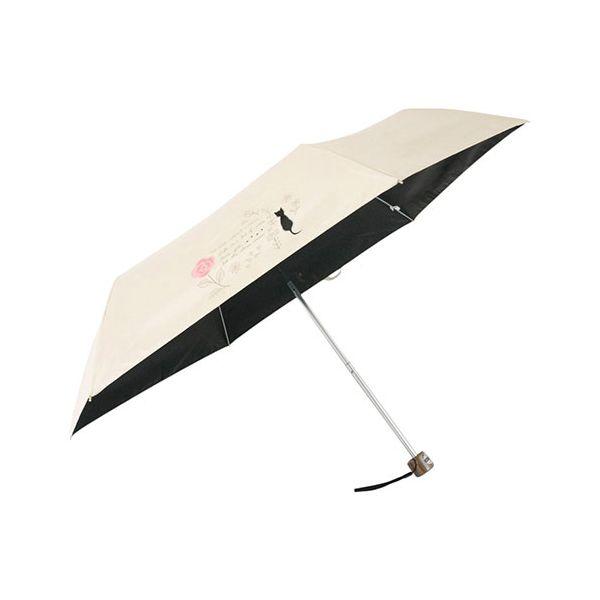 シンプルな無地に、1駒にバラと猫さんのシルクプリントのベーシックスタイルな晴雨兼用傘です。