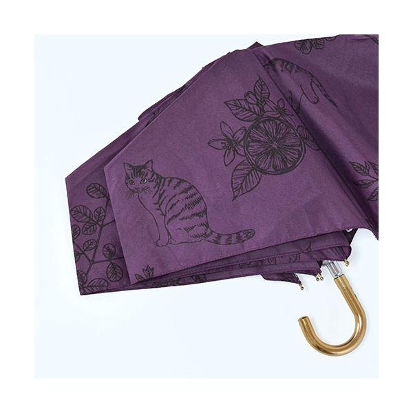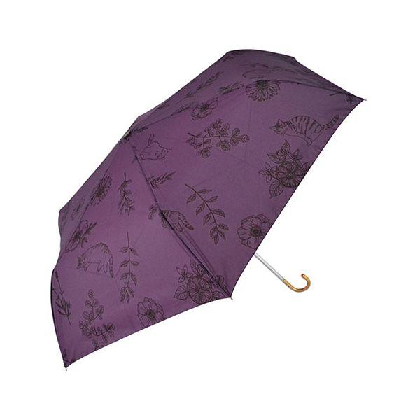 三国 MKN 55cm耐風楽ミニ傘 スケッチフラワーと猫 パープル A2114107