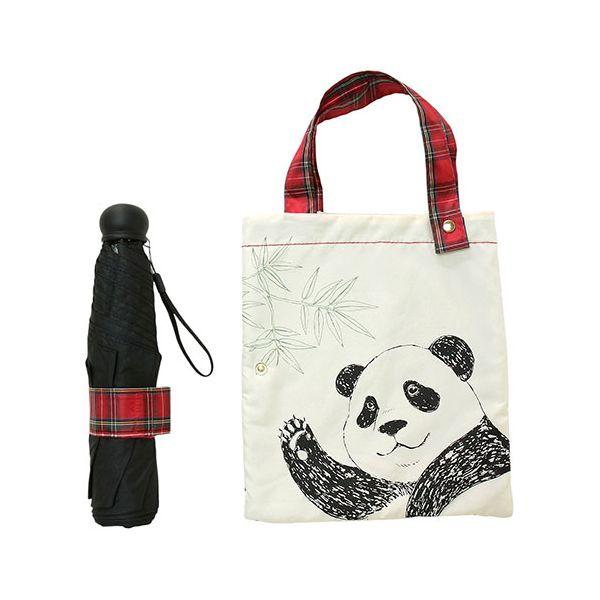 本商品はお取り寄せ商品のため、稀にご注文入れ違い等により欠品・遅延となる場合がございます。誠に恐れ入りますが、何卒ご了承ください。また、以下の場合には追加送料がかかる場合がございます。・沖縄、離島および一部地域への配送時 ・同梱区分が異なる商品の複数購入時 【同梱区分】:TS 1 【メーカー名】三国 やあっ!!ととぼけた「パンダ」がなんともかわいい、トートバッグ袋付の折りたたみ傘です。トートバッグの内側の吸水タオル地もアイボリーのふかふか生地にリニューアルしました。濡れた傘をたたまずにサッと入れて持ち運べます。普段は二つ折りにして収納しておけます。バッグの持ち手の片側がボタン式で外せるので、バッグやリュックに吊るすこともできます。傘以外にも、水滴のついたペットボトル等を入れることも。折りたたみ傘本体はベーシックな無地にワンポイントでパンダの後ろ姿をプリントしています。留めやすい幅広サイズのネームバンドには先染めチェック生地を合わせました。傘本体は、強度と柔軟性に優れたガラス繊維強化プラスチック「グラスファイバー骨」を使用。強風で「おちょこ」になっても簡単に元に戻り、折れにくい風に強い設計の折りたたみ傘。親骨をポキポキ折らずとも簡単に開閉ができる楽々ミニタイプ。傘を閉じる際に爪や指を挟まないよう、ボタン式の安全ろくろ付き。アニマルシリーズは「パンダ」「トラ猫」「カワウソ」「文鳥」「シマエナガ」「鹿と桜」「ロップイヤー」「ポメラニアン」の8パターン展開。同シリーズで、後ろが伸びてリュックが濡れにくい「バックスライド傘」もご用意しています。・傘 : ポリエステル100% ・トートバッグ袋 表地 : ポリエステル100% / 裏地 : ポリエステル80%ナイロン20% ・手元 : 木製 ・親骨&受骨 : アルミ&グラスファイバー ・中棒 : スチール&アルミ ・親骨の長さ : 55cm ・骨の本数 : 6本 ・全長 : 約55.5cm ・直径 : 約95cm ・重量 : 約245g ・収納時長さ : (二つ折り時)約26.5cm(持ち手含まず) ・収納時幅 : 約8cm ・トートバッグ袋サイズ : 約20cm×約24cm(持ち手含まず) ・保証期間 : 初期不良対応 ・生産国 : 中国 【使用時のご注意】 ※ご使用の際は、生地をほぐしてからゆっくりと開閉してください。無理に開くと骨が折れたり傘全体に負担がかかり故障の原因になります。※製品には尖った部分があります。常に周囲の安全を確認してご使用ください。※ステッキがわりに使用しないでください。※手元、または骨の先端がこわれたまま使用しないでください。※振り回したり投げたりしないでください。強風時は破損する恐れがありますので使用しないでください。※傘は必ず手に持ってご使用ください。※生地には防水加工を施していますが刺繍部分やその他特殊加工の部分から雨が漏れる可能性があります。※天然素材や濃い色の生地を使用している場合色落ちや色移りすることがありますのでご注意ください。※使用時は水分をよく切って陰干しをしてから保管してください。※お子様には保護者の方からご注意ください。※画面上と実物では、多少色味が異なって見える場合もございます。ご了承下さい。