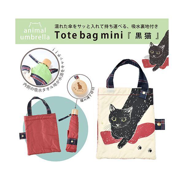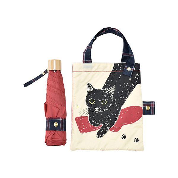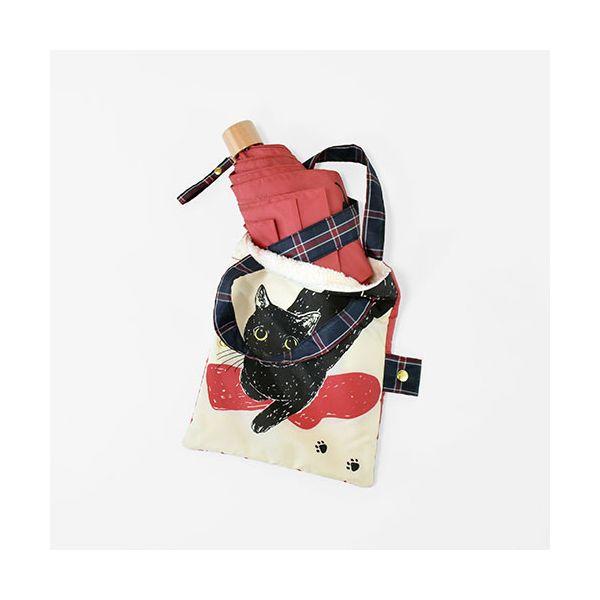 三国 MKN 55cm耐風楽ミニ傘 吸水トートバッグ袋付 黒猫 レッド A2913605