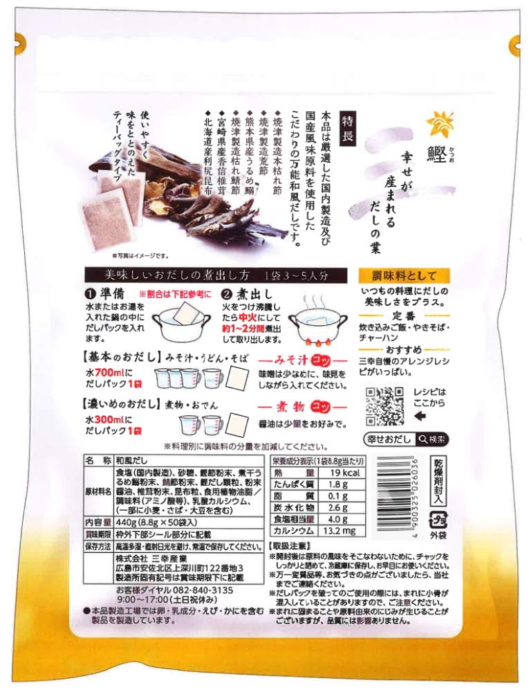 ■原材料名:食塩、砂糖、鰹節、うるめ鰹節、鯖節、粉末醤油、だし、昆布 調味料(アミノ酸等、)乳酸カルシウム(原材料の一部に小麦、大豆を含む)