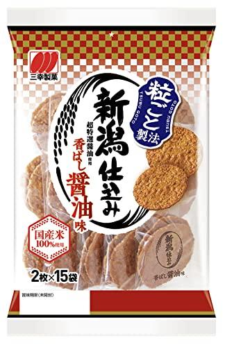 お米由来のつぶつぶ食感と醤油の香ばしさが絶妙な味わい。お米を粒ごと生かした「粒ごと製法」で、心地よいつぶつぶ食感に仕上げたうす焼せんべいです。超特選濃口醤油と深みのたまり醤油をじわっと焦がした香ばしさをお楽しみください。国産米100%使用。保存に便利な2枚入り個包装形態になります。