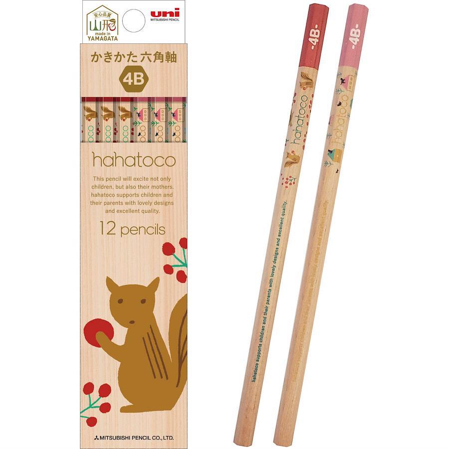 商品名:三菱鉛筆 かきかた鉛筆 ハハトコ 木軸 HT02 4B リス&家 1ダース K56214B