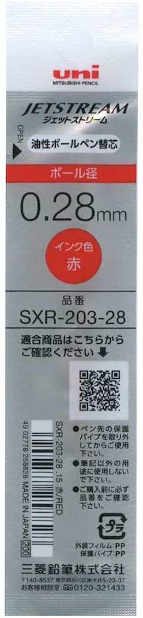 ●仕様:細さを極めたボール径0.28mmの超極細ジェットストリーム油性ボールペン用替芯です。SXR-203-28。◆本体サイズ:軸径:φ3.0×全長87.7mm◆本体重量:0.7g◆インク色:赤 ◆仕様:油性ボールペン・ジェットストリームタイプ ◆◆適合商品:SXN-1003-28
