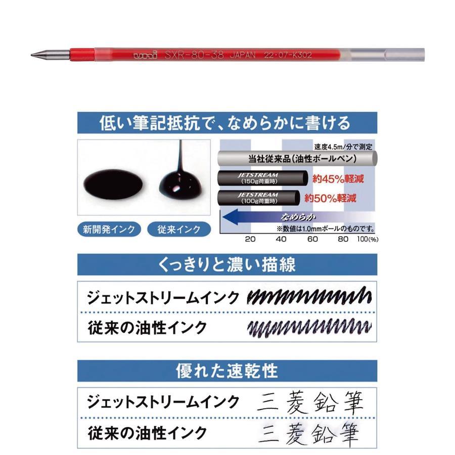 商品名:三菱鉛筆 ボールペン替芯 ジェットストリーム 多色多機能 0.38mm 赤 10本 SXR8038K.15 10P