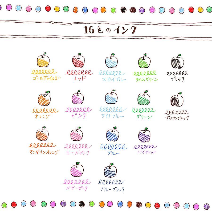 ホルダーは単色・3色・5色、リフィルはゲルインクがボール径0.28mm・0.38mm・0.5mmでそれぞれ16色。