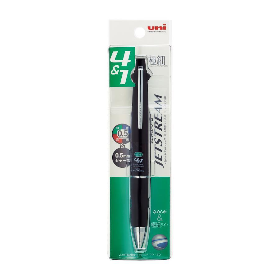 黒・赤・青・緑の0.5mm油性ボールペンと0.5mmシャープペンが一緒になった多機能ペンです。