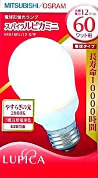 通常1-5営業日で発送:三菱 電球形蛍光ランプ 《スパイラルピカミニ》 60W形電球タイプ(A形) 3波長形電球色 口金E26 EFA15EL/12・SPF