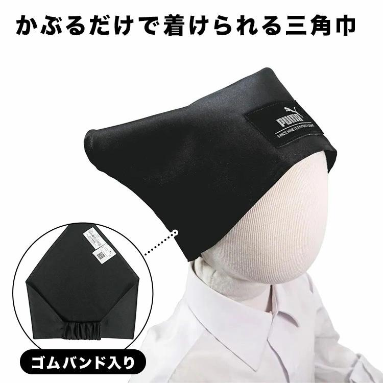 三角巾 キッズ PUMA プーマ 子供用 小学生 男の子 ゴム付き かぶるだけ 被るだけ 子ども 一人でかぶれる 自分でかぶれる 後ろゴム 着脱 簡単 黒 無地 ポリエステル100% 洗える シンプル スポーツ ブランド [kite-sling01]