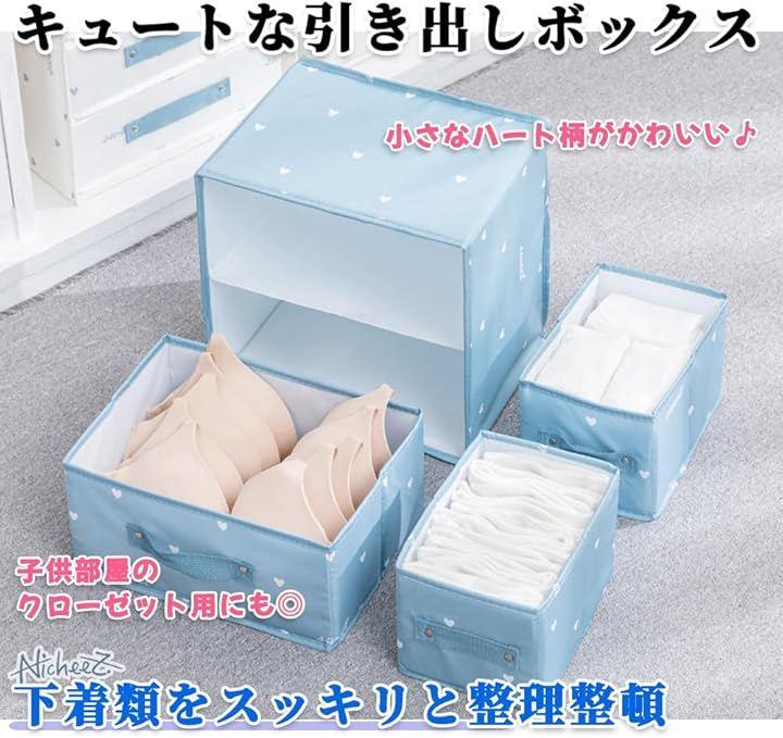 「キュートな引き出しボックス」小さなハート柄がかわいらしい下着・衣類収納ボックスです。