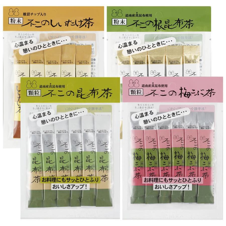 不二の昆布茶飲み比べセット【 A 】( 昆布茶 梅こぶ茶 しいたけ茶 根昆布茶 ) レシピブック付き 個包装