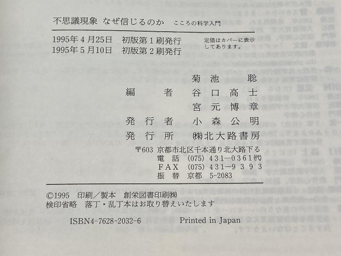 商品名:不思議現象 なぜ信じるのか: こころの科学入門 北大路書房 谷口 高士