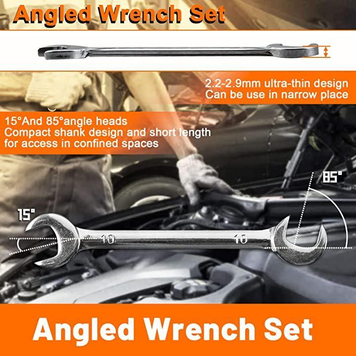 「アングルヘッド設計」15°と85°の角度で様々な箇所へアクセス可能, 狭い隙間や薄いナットの作業に最適です。