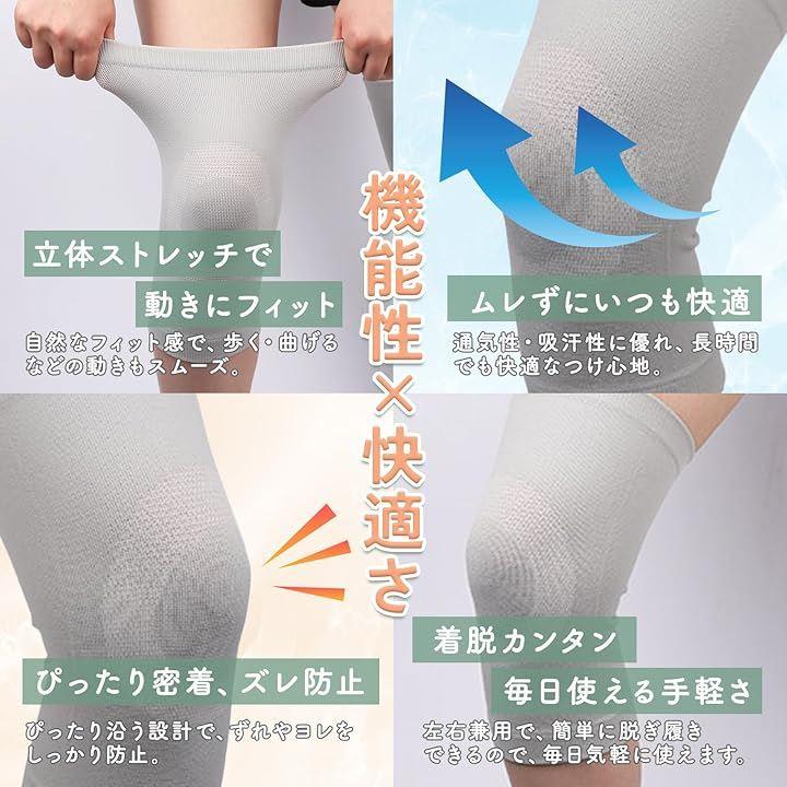 「快適な着け心地」通気性・吸湿性に優れた素材でより快適に膝をケア抗菌防臭加エを施した極薄メッショ生地はスリムパンツでも目立たず、シルエットすつきりスタイルを気にせずに保温ケアがでもます。
