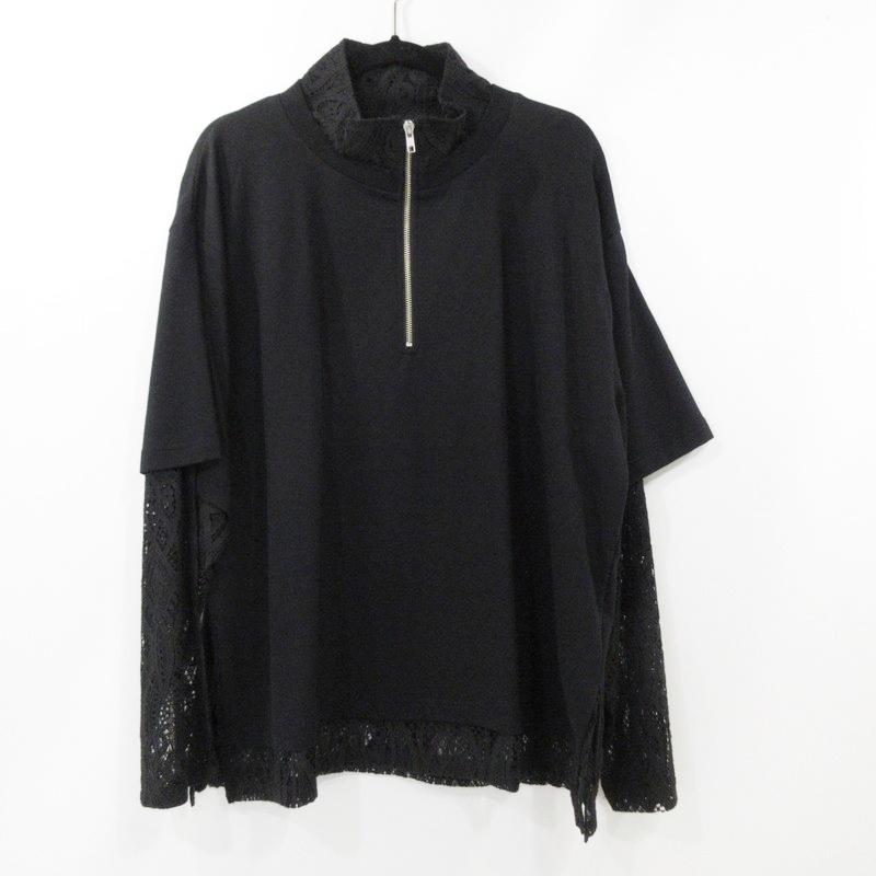 【モデル名】 レースレイヤードハーフZIPカットソー