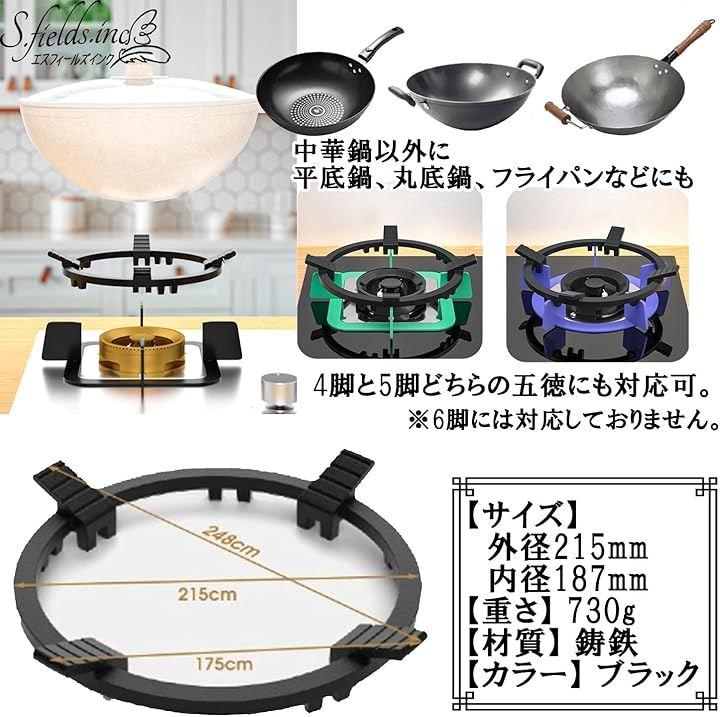 この中華鍋リングは頑丈な鋳鉄製で、重量も730gあり、しっかりと五徳にセットできます。
