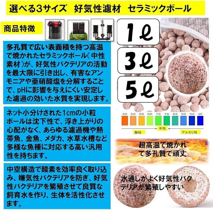 「選べる1L 3L 5L」丸型 多孔質 濾過材 ろ材 水槽 セラミックボール ネット入り 販売。中性濾材 アクアリウム 生物濾過 水質改善 バクテリア淡水 海水に対応