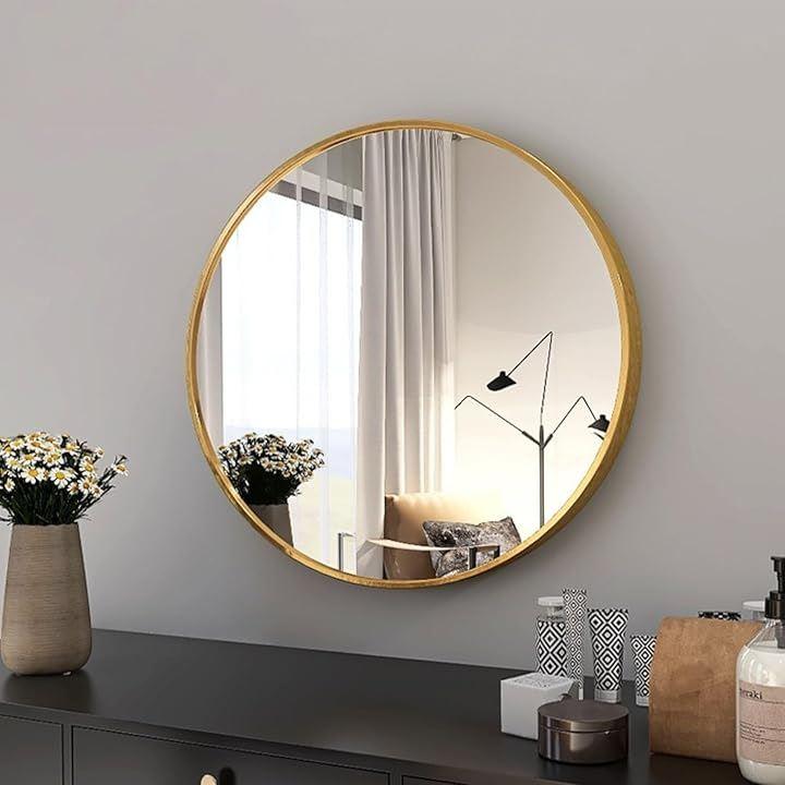 おしゃれな北欧風アルミフレームの円形ミラーは、湿度の高い環境でも安心して使用でき、堅牢な設計がミラーを守ります。