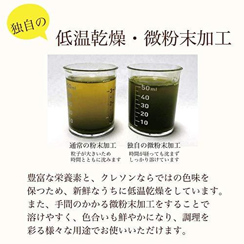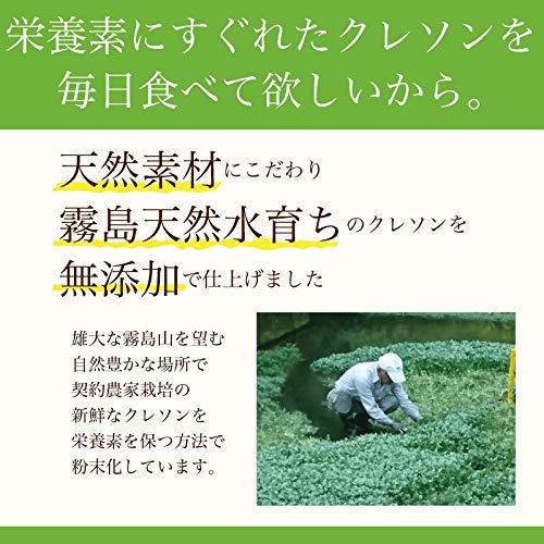 九州 霧島山の天然水で育ったクレソンを、新鮮なうちにパウダー加工しました。 微粉末加工で水に溶けやすく、色もきれいに出ます。 お料理だけでなく粉シャンプーにも。 クレソンの成分をできる限り残すため低温乾燥をしております。そのため、クレソンの辛味成分が多く残っており、わさびのようなツンとした辛味がございます。辛味が苦手な方は、マヨネーズなど油分と混ぜて摂る方法がオススメです。