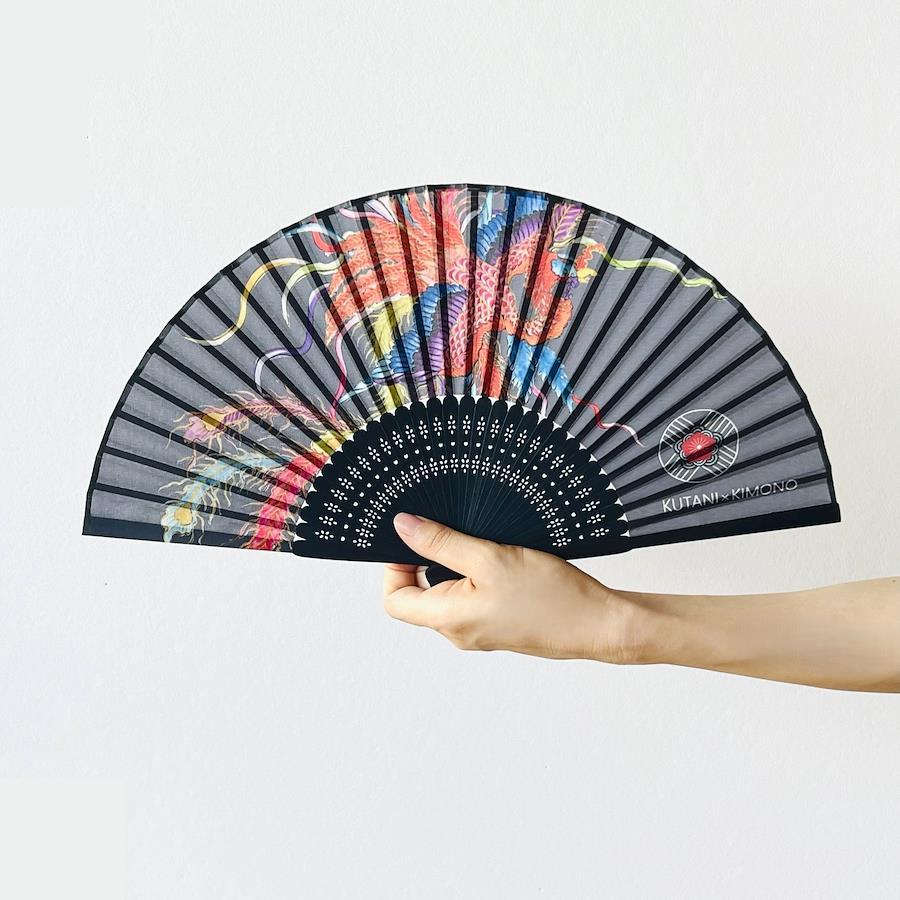 石川の伝統工芸「九谷焼」作家が描いた唯一無二の文様を、機能性に優れた素材に落とし込んだアパレルブランド。第二段ラインナップとして 扇子 が仲間入り!